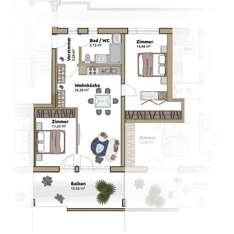 Visualisierungen und Grundrisse.
